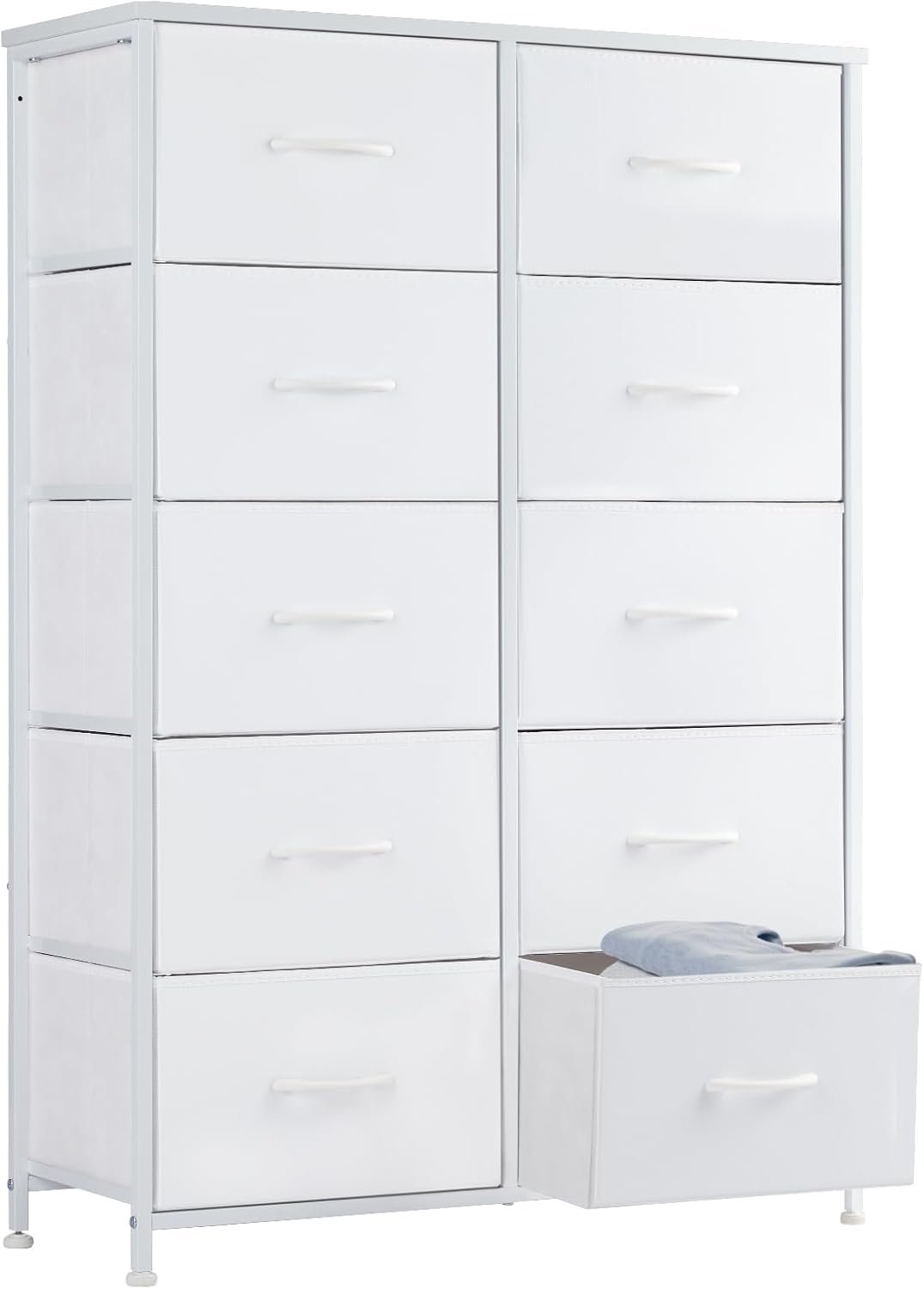 10 Drawer Fabric Dresser Tall Chest Storage Organizer Tower with Cabinet Metal Frame and Wood Top Lightweight Closet Furniture for Bedroom,Cream White