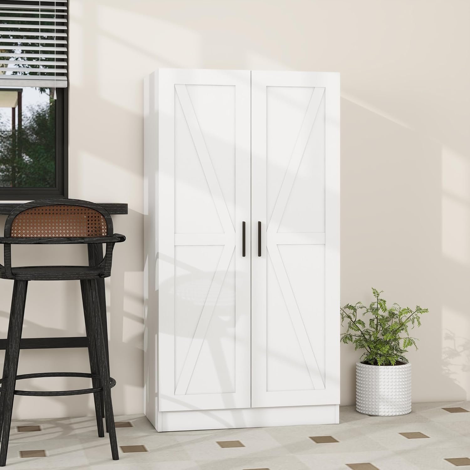 Wooden Storage Cabinet, Food Pantry Narrow Cabinet Free Standing with 2 Doors and 3 Shelves Tool Cabinet, for Kitchens, Living Room, Utility Rooms (White)